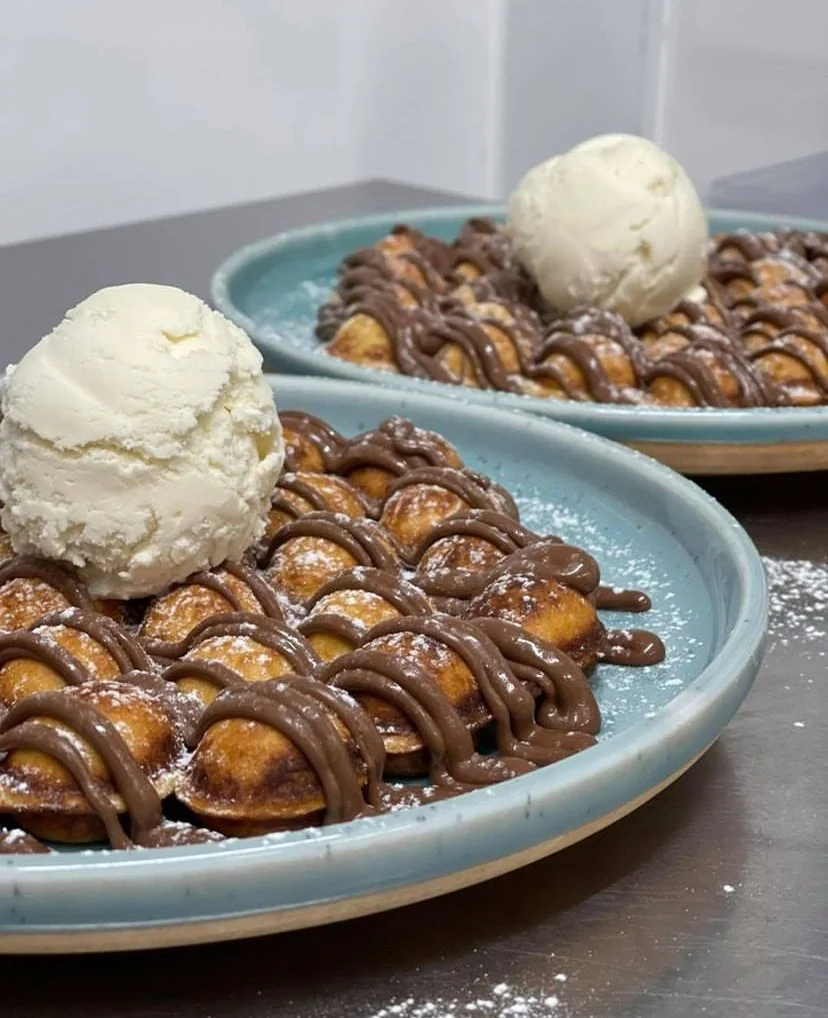 Our homemade Belgium waffles are a delicious mix of crispy and fluffy. The perfect dessert to share together or keep all for yourself.