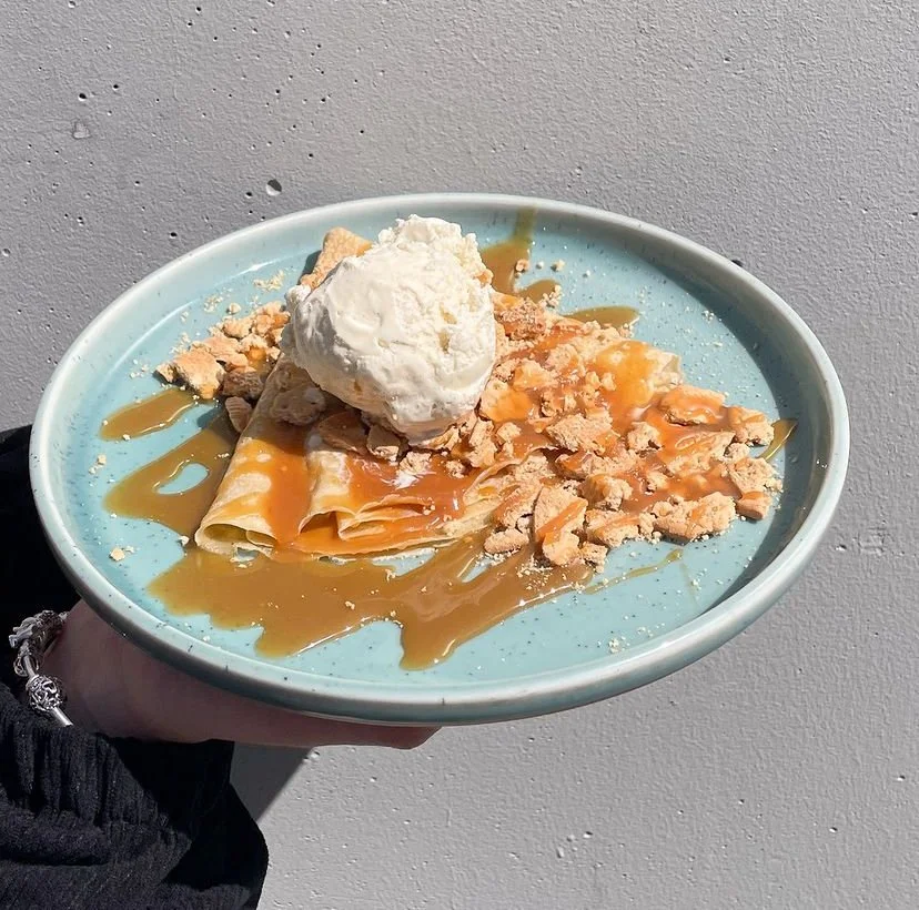Indulge in our sweet crepes. Keep them simple with cream and icing sugar or go for something fancy with our range of toppings that can be added.